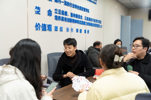 在经管公司第一届“新春迎福瑞”掼蛋比赛中,28支队伍积极参赛,采用随机抽签分组制,各参赛队团结协作,注重技战术组合变化,沉着应战,默契配合,全天经过4轮激烈角逐和精彩对弈,最终徐晨、李陆苗两位青年教师斩获冠军,3支队伍、4支队伍分获亚军和季军。副董事长任南、经管公司经理王念新、党委书记尹洁、副书记赵海晓、工会主席储秋蓉为获奖队伍颁发奖杯和奖品。