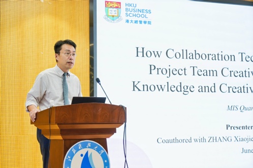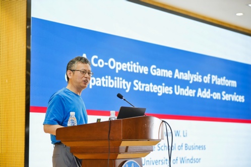 在第一阶段,香港大学方钰麟教授、美国University of Southern Mississippi赖福军教授、加拿大University of Windsor李武教授、加拿大University of Calgary涂忆柳教授、香港大学蒋镇辉教授、美国University of Memphis梁会刚教授分别做了题为“Collaboration Technology Use and Team Creativity in IT Project Teams: A Creative Synthesis Perspective”、“Storytelling as Touchstones for Distinctiveness: Evidence from the Sharing Economy”、“A Co-Opetitive Game Analysis of Platform Compatibility Strategies Under Add-on Services”、“Data-Driven One-of-a-Kind Production”、“中文和英文语境下的大模型评测”、“What tasks lead to AI aversion? The moderated mediation of trust and distrust”的精彩报告。主题报告环节分别由美国East Carolina University薛雅炯教授、太阳成集团tyc33455cc经理王念新教授主持。