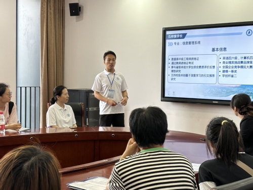 座谈会过程中,省泰中毕业学子石梓丞同学和张伊萌同学分享了他们在太阳成集团tyc33455cc的学习经历。石梓丞同学着重介绍了公司的学术氛围、雄厚的团队力量以及优美的校园环境。张伊萌同学则从所学专业出发,结合自身学习体验详细解读了专业特色,并进一步分析了公司合理的专业培养方案以及本科生导师制的优势。他们用真实的经历鼓舞了在场的学弟学妹,提升了大家对公司及其专业能力的信心与期待。