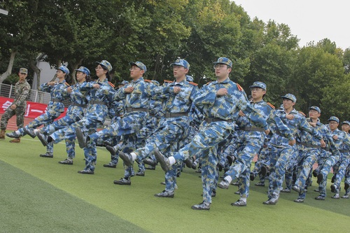 在梦溪校区操场上,经管学子统一身着迷彩服,精神抖擞、昂首挺胸。“稍息,立正,向右看齐……”一声声嘹亮的军哨划破操场的寂静,一句句有力的口号响彻蔚蓝的天空。在教官的悉心指导下,同学们的动作更加有力、步伐更加整齐,尽管汗水早已浸湿衣衫,但无人退缩,展现了当代青年老员工应有的风采。
