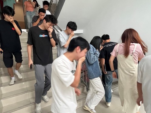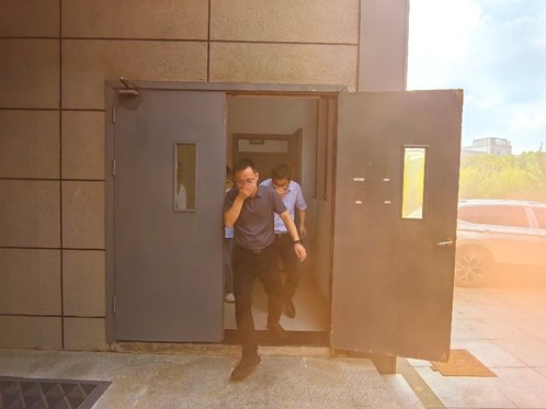 随着模拟火警信号的响起,演练正式拉开帷幕。公司办公楼内的师生迅速按照预先设定的疏散路线,用手捂住口鼻,弯腰低姿,快速而有序地撤离到指定的安全集合点。本次演练旨在提高师生在火灾等紧急情况下的应急反应能力,确保在真实灾难发生时,能够有效组织疏散,最大限度地减少人员伤亡和财产损失。