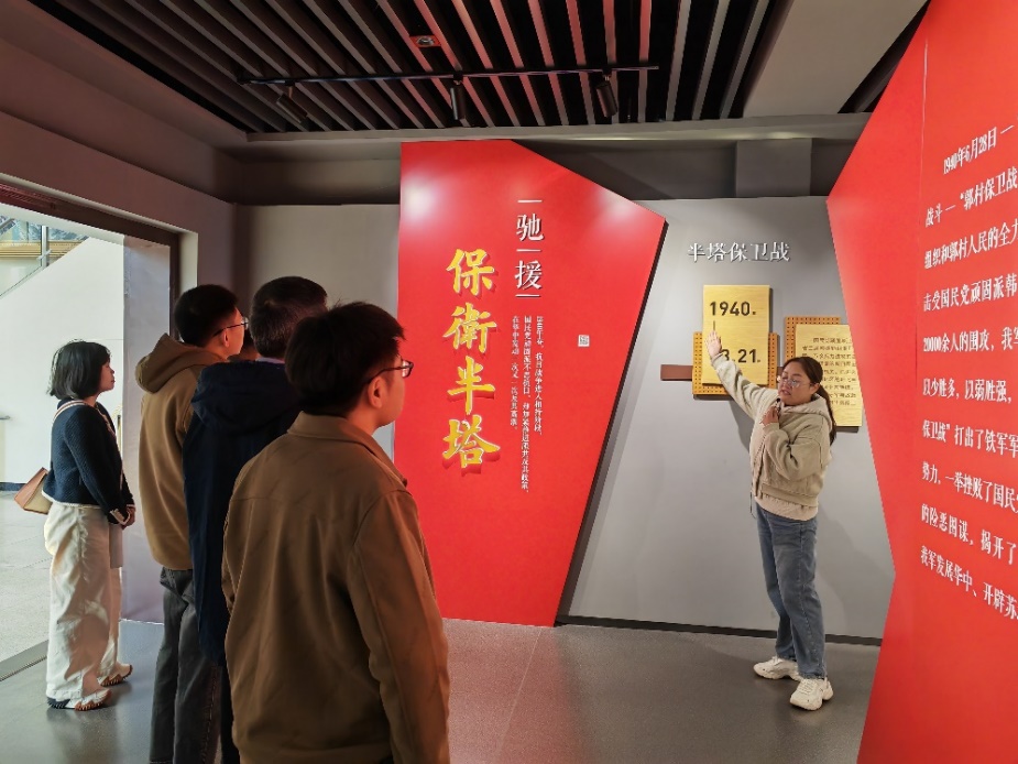 在纪念馆内,通过一幅幅珍贵的历史照片、一件件饱经风霜的革命文物以及生动详实的文献资料,大家仿佛穿越时空,回到了那个硝烟弥漫的年代。支部党员仔细聆听讲解员讲述郭村保卫战中,革命先烈以少胜多、智勇双全,最终取得胜利,深刻感受到了革命先辈不畏艰难、勇于牺牲的大无畏精神。