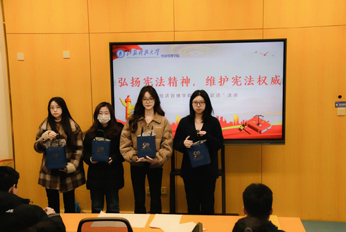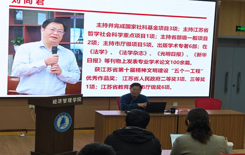 12月4日是第十一个“国家宪法日”,江苏省宪法“千场巡回宣讲”团专家组成员刘同君教授应邀来校开展宪法宣传教育。刘同君教授主讲《宪法实施与宪法发展》报告,报告会由经管公司党委书记尹洁主持,经管公司党委副书记赵海晓及100余名师生聆听报告。