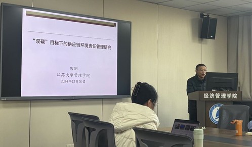 田刚教授以《“双碳”目标下的供应链环境责任管理研究》为题,围绕供应链环境责任共担过程中的管理问题展开模型研究,分享了跨国公司在华供应商环境责任管理,政府规制下食品供应链链主企业环境责任管理等最新研究成果。