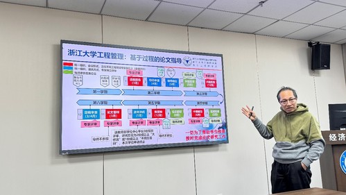 报告中,唐教授全面剖析了工程管理硕士(MEM)的培养目标、课程体系和实践成果。他阐述了专业学位与学术学位的区别,分析了MEM在提升产业化人才培养质量方面的重要意义。报告重点介绍了浙江大学在培养具有跨学科管理能力的工程领军人才方面的两个创新举措。一是面向应用的课程教学体系:程体系涵盖工程技术、管理理论和创新创业等领域,特别注重理论与实践的结合;通过案例教学、实践教学和讨论教学,培养员工在复杂工程场景中进行决策和问题解决的能力。二是基于过程的论文指导模式:从选题到答辩的全过程为员工提供多维度的支持和把关。通过开题报告、进展检查、中期报告、预答辩等环节,确保论文选题贴近实际工程问题,研究过程严谨科学,研究成果具有实践价值。
