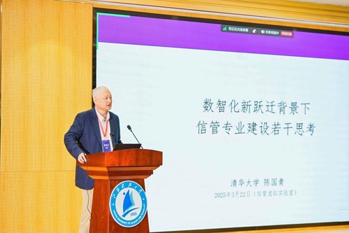 清华大学陈国青教授作题为《数智化新跃迁背景下的信管专业建设若干思考》的主旨报告,系统回顾了信管专业的发展脉络,深入分析了其学科边界与学理内涵,重点探讨了与大数据管理应用、平台与专业培养模式、AI挑战与机遇之间的关系。