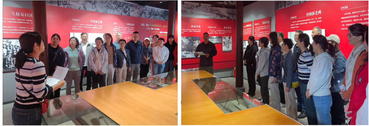 教师党员首先来到郭村保卫战、苏北新四军指挥部纪念馆,在讲解员的带领下,有序步入馆内,馆内陈列的珍贵文物、历史照片以及详实的文字资料,生动再现了新四军挺进苏北、东进抗日的艰辛历程。从郭村保卫战的浴血奋战,到黄桥战役的以少胜多,每一个战斗场景的还原,都让教师党员深切感受到了新四军将士们坚定的理想信念、顽强的战斗意志以及为民族解放事业无私奉献的精神。